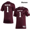 Women Bryce Anderson Maroon TAMU #1 NCAA Jersey 540226-512